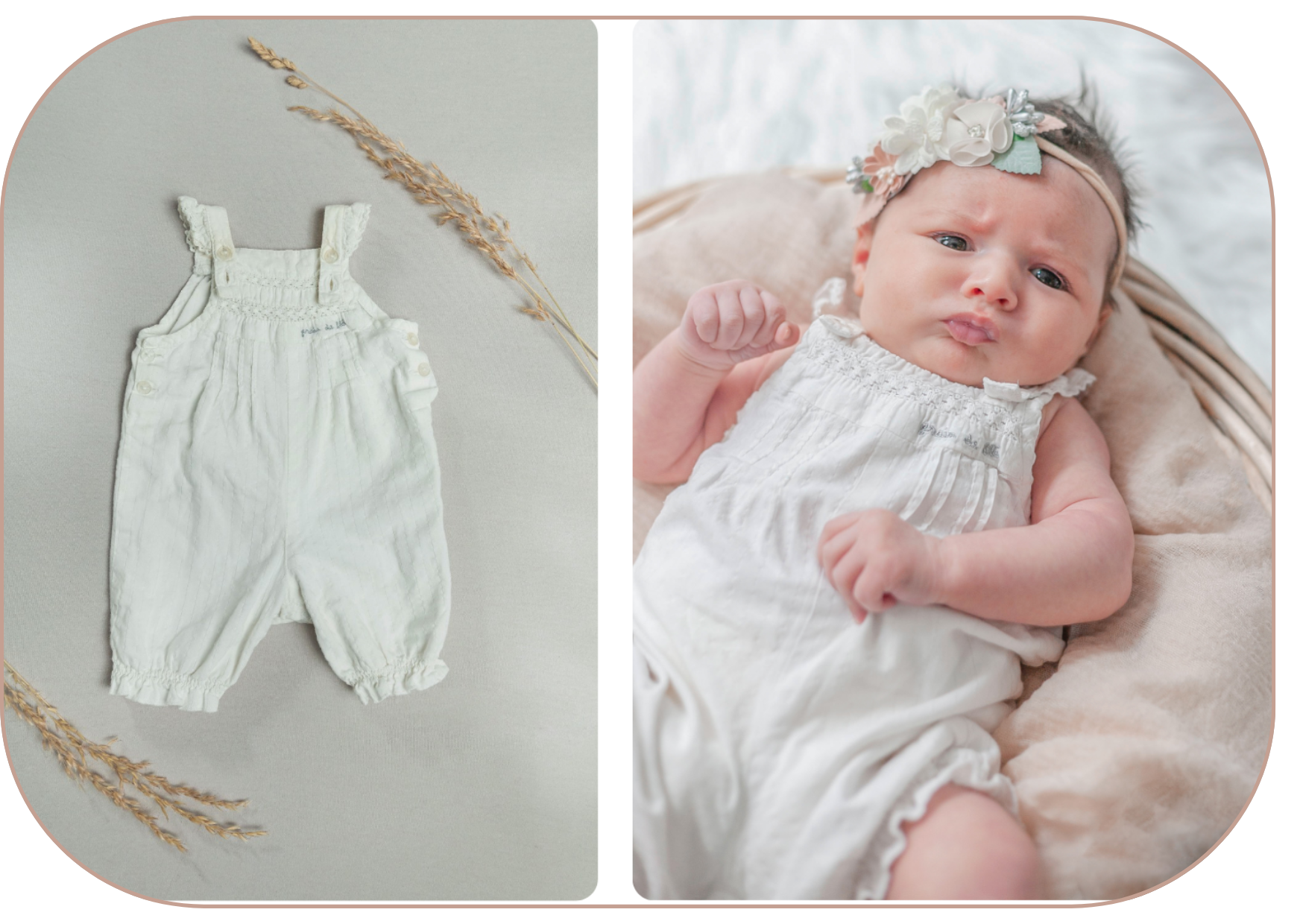 Peut se porter torse nu, avec un body blanc ou une chemise